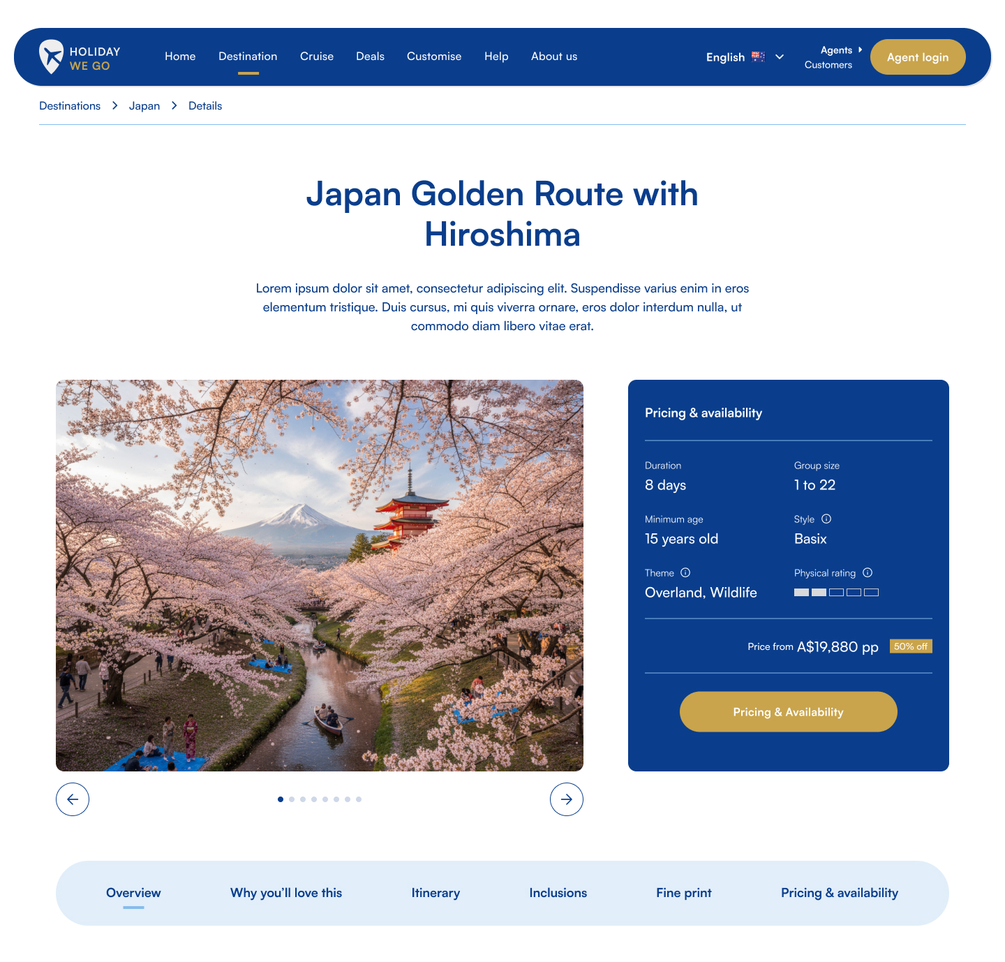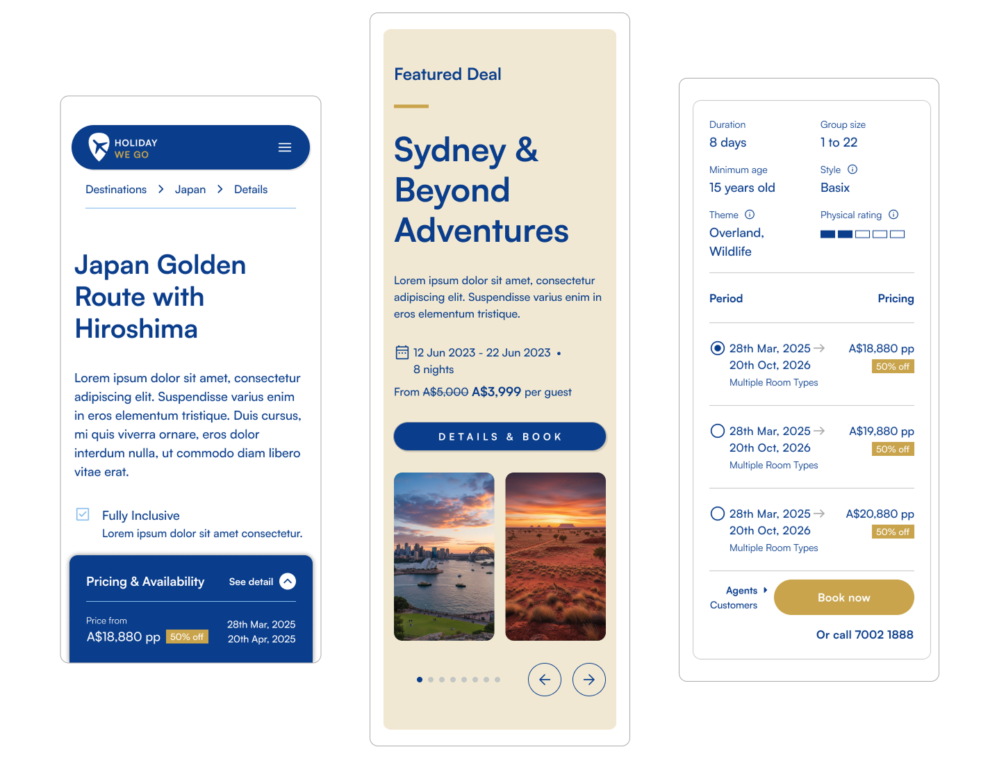 The final solution clearly separates B2C and B2B journeys while maintaining a cohesive brand experience. By combining strategic content, clear booking flows, and a refined visual system, Holiday We Go is positioned as a premium and reliable travel supplier for agencies.